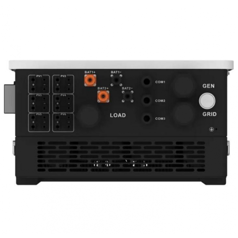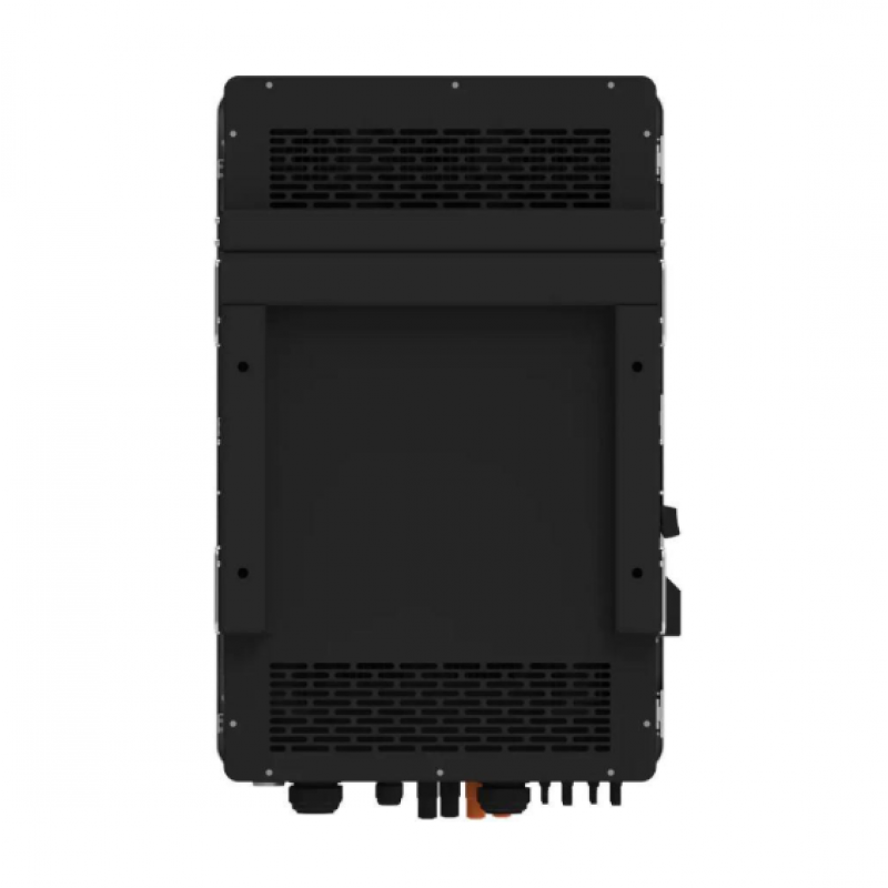 - Вбудовано 6 MPPT-трекерів, кожен з яких підтримує по 2 стрінги сонячних панелей. Це дозволяє підключити до 12 окремих масивів сонячних батарей, розміщених на різних сторонах даху або на землі, у послідовному або паралельному підключенні. Вхідний струм трекера складає 36 А + 36 А + 36 А + 36 А + 36 А + 36 А (максимум 54 А), а напруга постійного струму від сонячних батарей — 150–850 В.