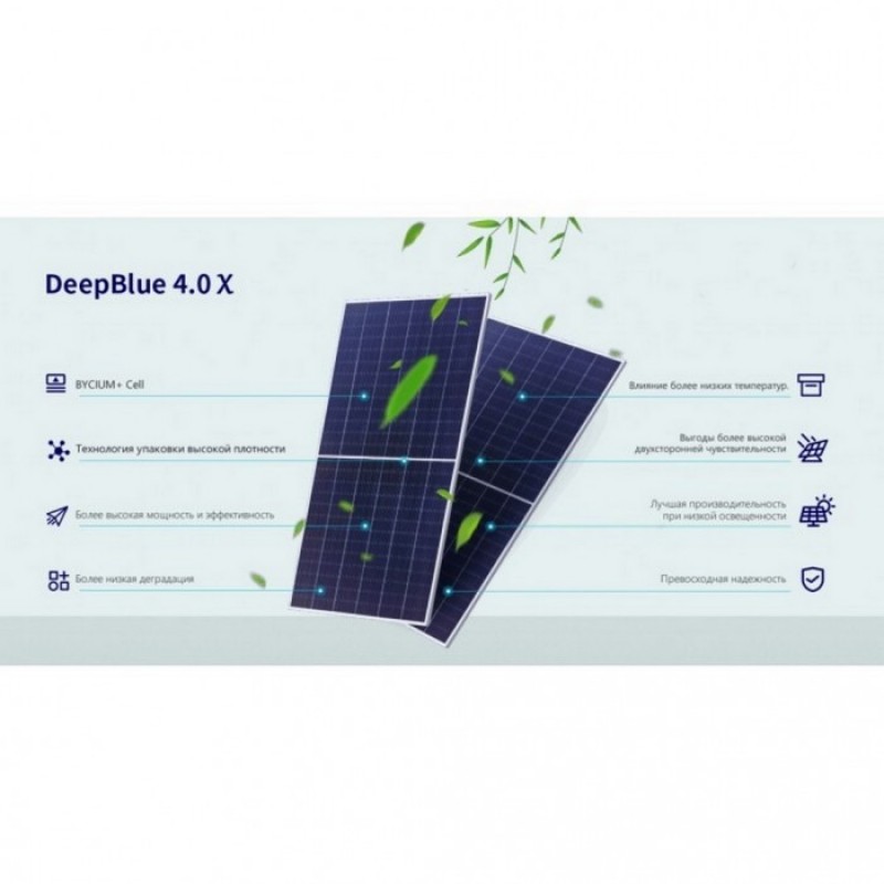 Завдяки двосторонній генерації та застосуванню елементів n-type, модуль демонструє підвищену ефективність, стабільну роботу та мінімальний рівень деградації протягом усього терміну експлуатації. Це робить панель надійним рішенням як для промислових, так і для комерційних сонячних електростанцій, де важлива максимальна продуктивність і довговічність.
