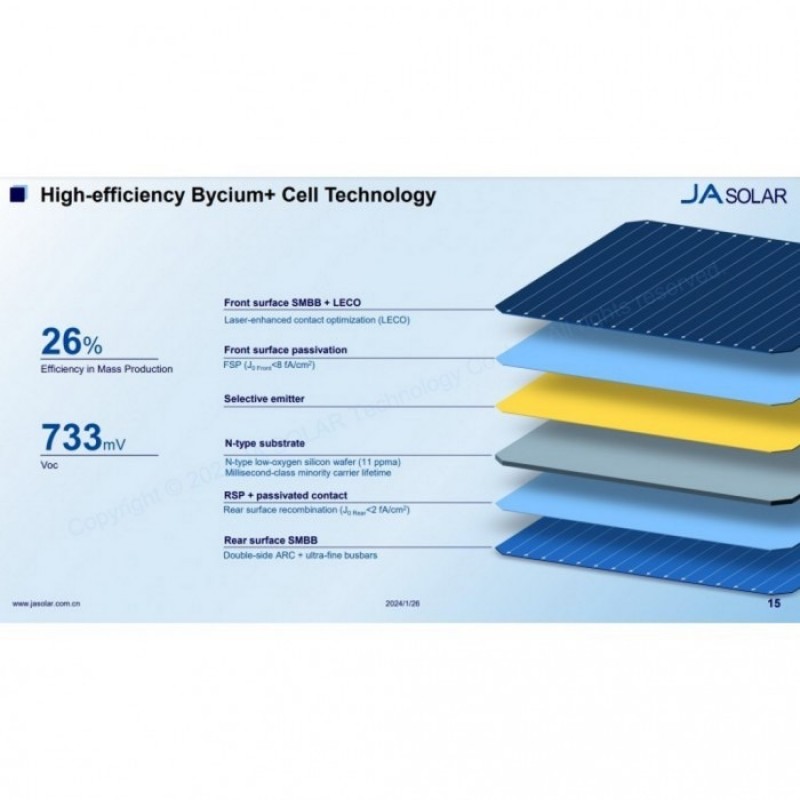 Фотоелектричні модулі JA Solar — це сучасні рішення з монокристалічною та двосторонньою архітектурою, що підвищує рівень уловлювання сонячної енергії. Номінальна потужність за стандартних умов (STC) становить 630 Вт, а коефіцієнт корисної дії досягає 23,3%, що гарантує високу ефективність навіть у складних кліматичних умовах. Використання напіврозрізаних елементів N-типу формату 182 мм забезпечує покращений вихід енергії та стабільність роботи, роблячи ці модулі оптимальним вибором для житлових, комерційних і промислових сонячних проєктів.